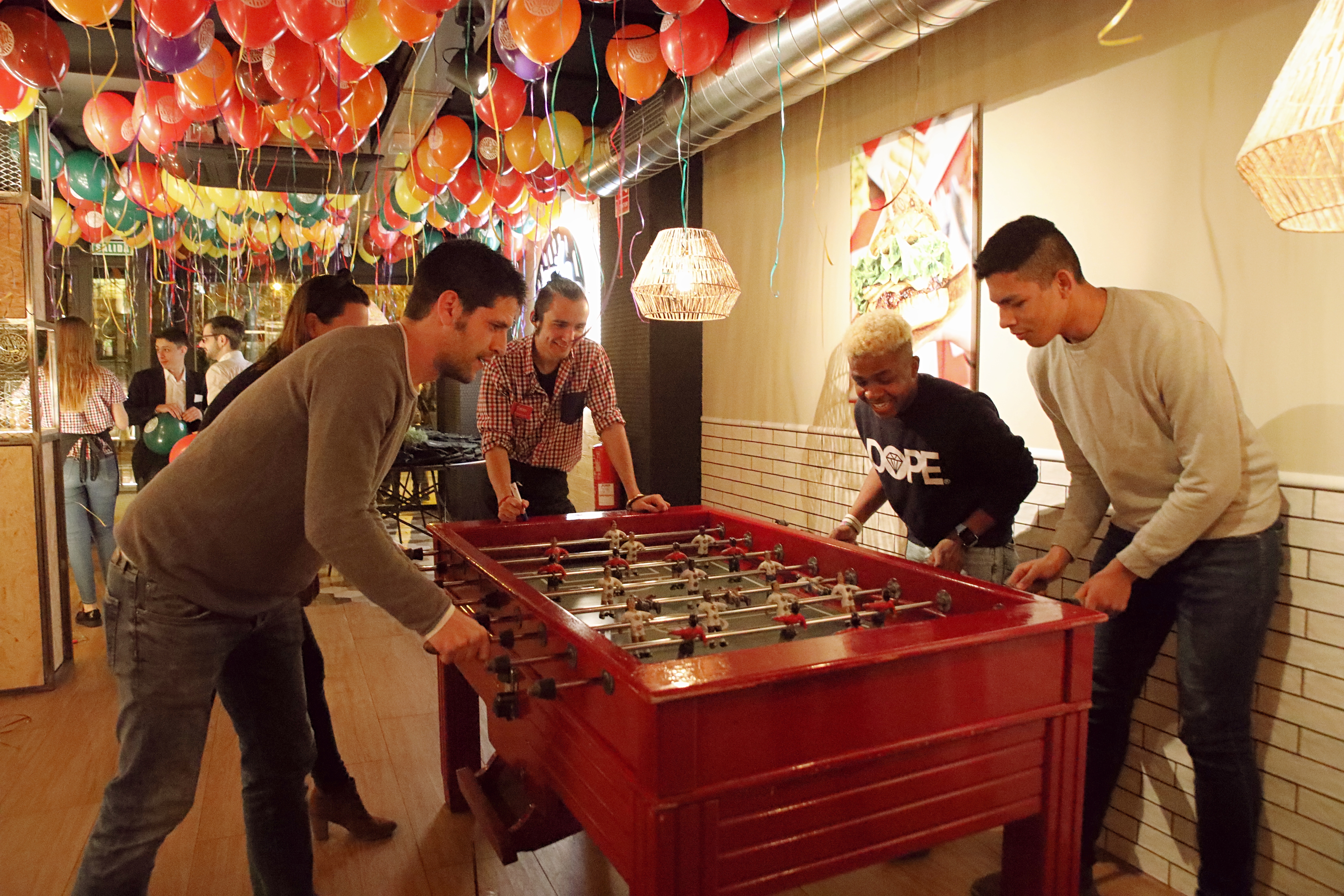 Esta noche estuvo inspirada en una especie de sala de juegos. Hemos llenado el local de juegos interactivos como dardos, mesa de futbolín, air hockey, entre otros. ¡Más divertido imposible!
